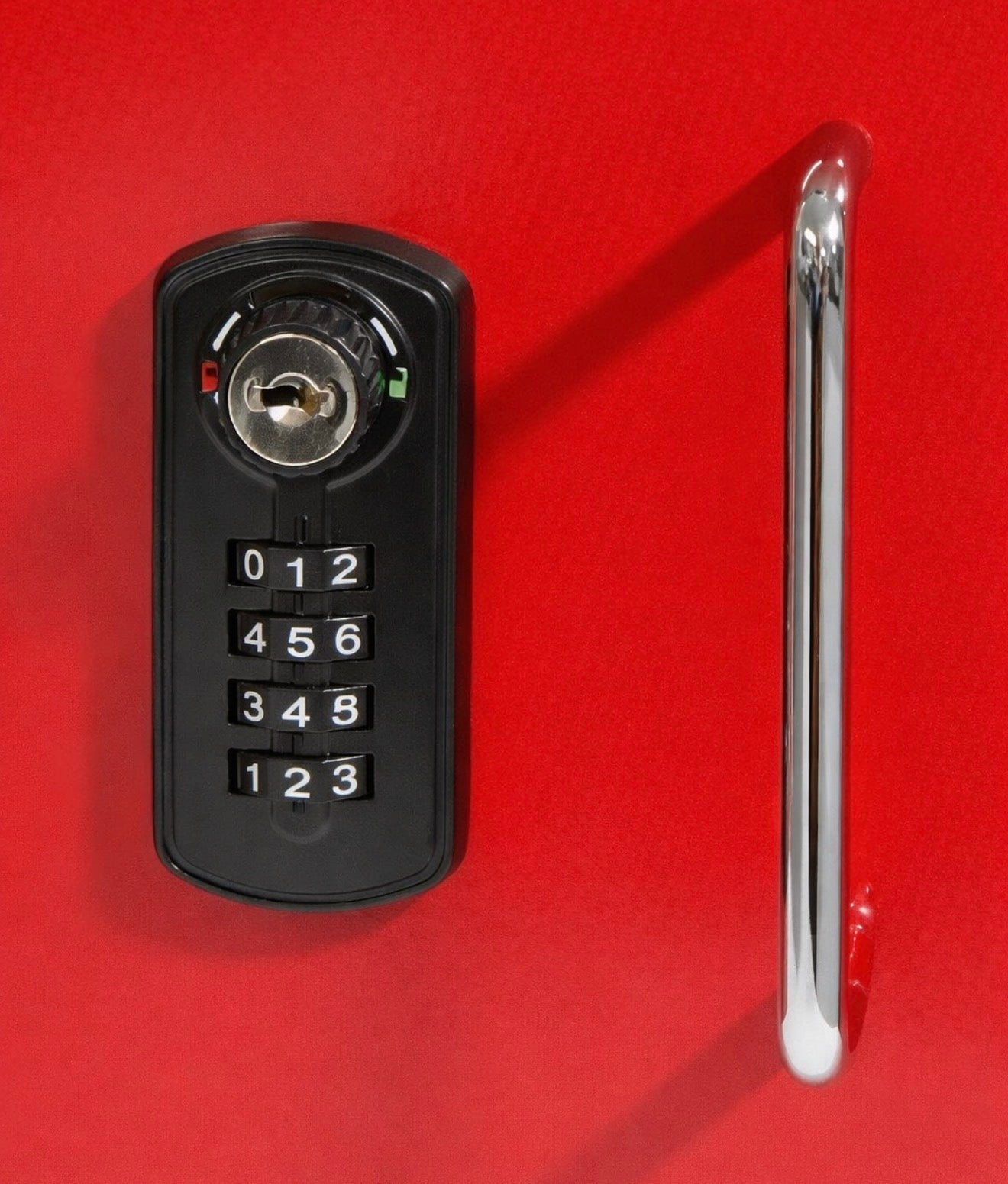 The locker also has a sturdy industrial lock that can be keyed so one code and master key will open as many lockers as possible you wish to stage on a large campus, stadium, bus depot, school, mall and so on. The location is only limited by your imagination.